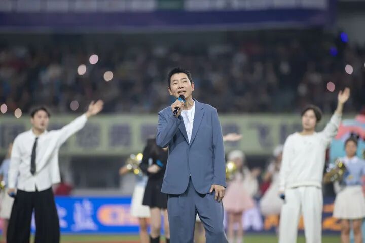 周深演唱“苏超”原创歌曲《利害怒放》,全场不雅众转眼高兴。新华日报·交织点记者 万程鹏 摄