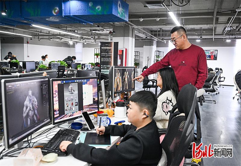 1月12日,张家口数字文创产业基地,北动漫(河北)收罗科技有限公司职工在有计划东说念主工智能花样细节。 河北日报记者 耿辉摄