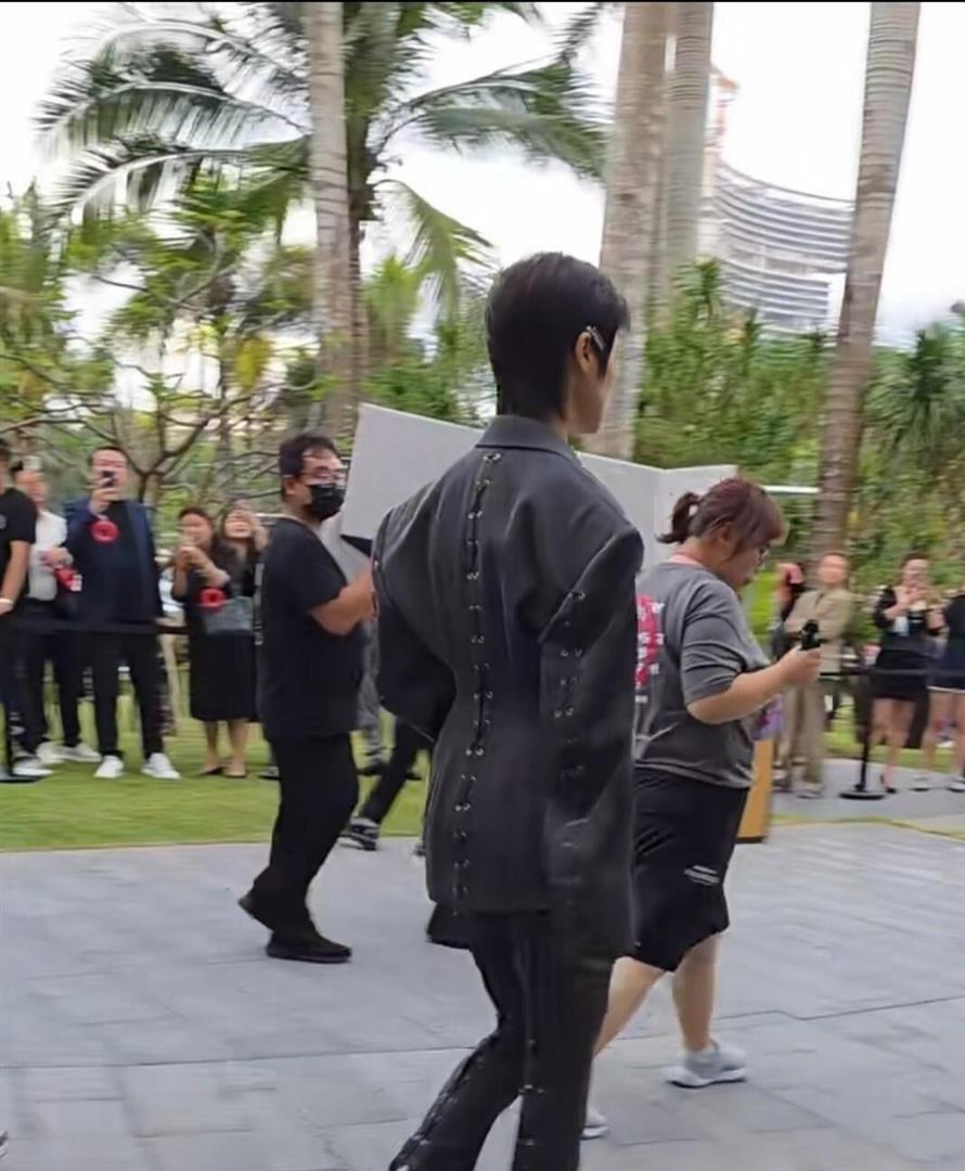 这件衣服是Georges Chakra 2025秋冬高定,手工刺绣的玫瑰像藤蔓同样滋长。 李宇春背部明晰的肌肉线条和那片“玫瑰园”一谈清楚在光束下。 吞并场演唱会,她开场穿的是Mugler 2026春夏金色西装,金属质感,肩线机敏,被粉丝称为“黄金战袍”。